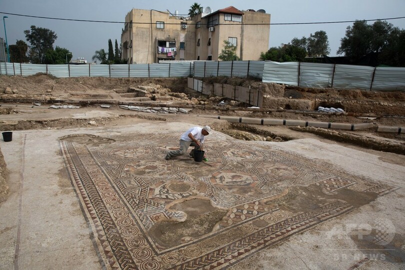 【11月17日 AFP】古代ローマやビザンツ(Byzantine)帝国時代に裕福な人々が暮らしていたとされる場所で偶然発見された「印象的な」モザイク画が、今週初めて一般に公開される。イスラエル考古学庁(Israel Antiquities Authority、IAA)が16日、明らかにした。