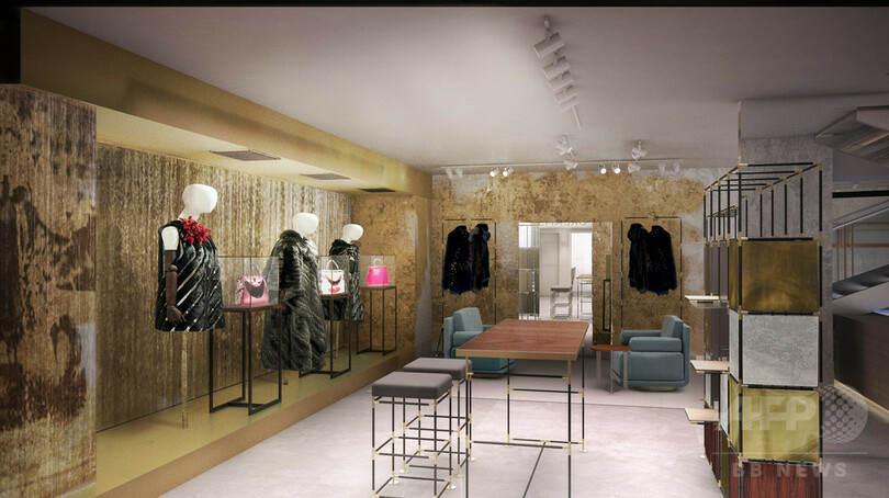 地下1階にはブランドのDNAであるラグジュアリーなファーが並び、メゾンと映画界との関係を物語る映像を鑑賞できるミニシアターを併設。1階はウィメンズ、2階はメンズフロアとなっている。