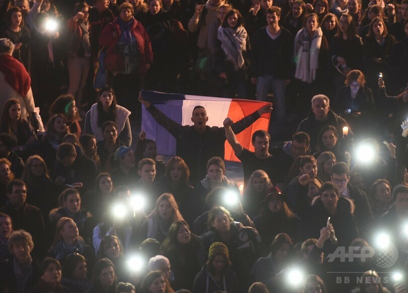 【11月18日 AFP】フランス南部トゥールーズ(Toulouse)のキャピトル広場(Capitol square)で17日、パリ(Paris)で13日に発生した連続襲撃事件の犠牲者を追悼する集会が行われ、大勢の人々が明かりを手にして参加した。今回の事件では129人が死亡、352人が負傷した。(c)AFP