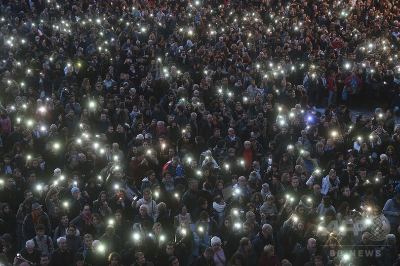 【11月18日 AFP】フランス南部トゥールーズ(Toulouse)のキャピトル広場(Capitol square)で17日、パリ(Paris)で13日に発生した連続襲撃事件の犠牲者を追悼する集会が行われ、大勢の人々が明かりを手にして参加した。今回の事件では129人が死亡、352人が負傷した。(c)AFP