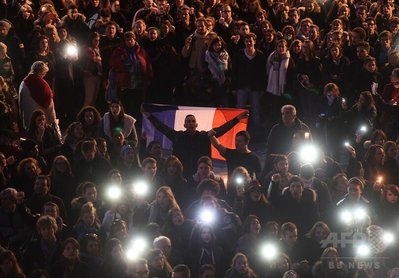 【11月18日 AFP】フランス南部トゥールーズ(Toulouse)のキャピトル広場(Capitol square)で17日、パリ(Paris)で13日に発生した連続襲撃事件の犠牲者を追悼する集会が行われ、大勢の人々が明かりを手にして参加した。今回の事件では129人が死亡、352人が負傷した。(c)AFP