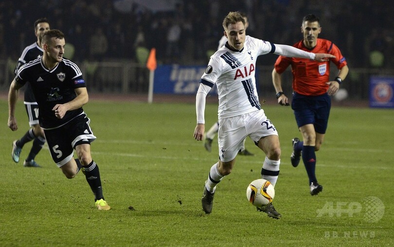 【11月27日 AFP】サッカーヨーロッパリーグ(UEFA Europa League 2015-16)は26日、グループリーグ第5節の試合が各地で行われ、グループJのトッテナム・ホットスパー(Tottenham Hotspur)は1-0でカラバフFK(Qarabag FK)を下し、決勝トーナメント進出を決めた。