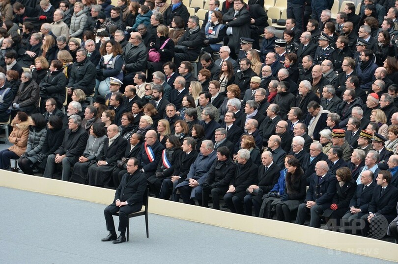 【11月27日 AFP】130人が犠牲となったパリ(Paris)同時テロの追悼式典が27日、パリで行われ、フランソワ・オランド(Francois Hollande)仏大統領を始め要人や事件の負傷者ら約2000人が参列した。