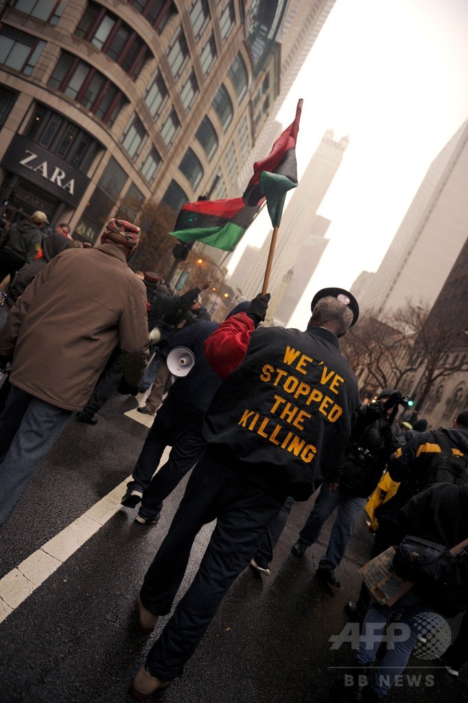 米シカゴで大規模デモ、白人警官による黒人少年射殺に抗議