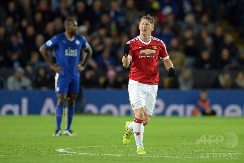 それでもユナイテッドは、ハーフタイム直前にデリー・ブリント(Daley Blind)の右CKからシュバインシュタイガーが同点ゴールを決めた。シュバインシュタイガーは岡崎慎司(Shinji Okazaki)のマークをものともせずに振り切り、至近距離からヘディングシュートを放ってシュマイケルを打ち破った。(c)AFP