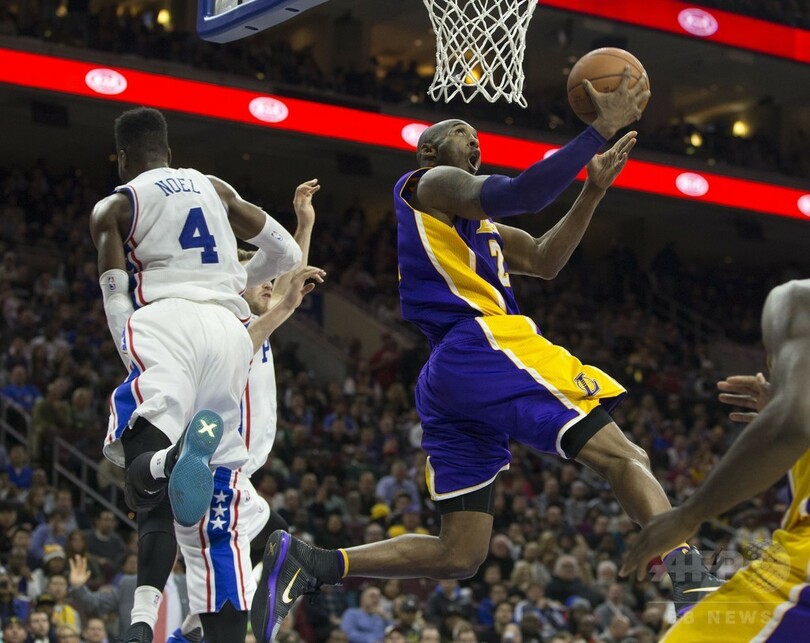 ブライアントは先月29日、キャリア通算20年目を迎えた今季限りでの現役引退を表明しており、そのためフィラデルフィアのファンは、試合前の練習や選手紹介のときにブライアントに対してスタンディングオベーションを送っていた。(c)AFP