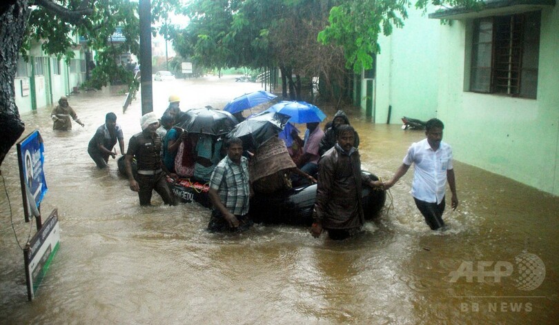 【12月2日 AFP】インド南部タミルナド(Tamil Nadu)州で2日、数週間続く洪水がさらなる大雨でより深刻な状況となっていることを受け、軍が派遣されるとともに、主要空港が閉鎖された。洪水によりこれまでに200人近くの死者が出ている。