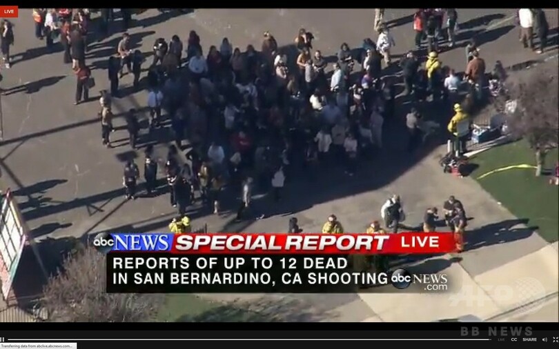 ロサンゼルス(Los Angeles)東方に車で約1時間の現場には、警察特殊部隊(SWAT)、消防隊、救急車が急行。警察は、地元住民に対し、現場に近寄らないよう警告した。米連邦捜査局(FBI)は、「テロ事件」かどうかは今のところ不明としている。