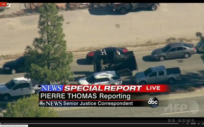 ロサンゼルス(Los Angeles)東方に車で約1時間の現場には、警察特殊部隊(SWAT)、消防隊、救急車が急行。警察は、地元住民に対し、現場に近寄らないよう警告した。米連邦捜査局(FBI)は、「テロ事件」かどうかは今のところ不明としている。