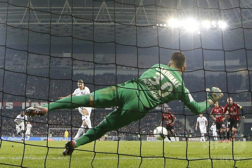 前半終了間際、ニースのニクラス・フルト(Niklas Hult)がエリア内でイブラヒモビッチを倒し、レッドカードで一発退場を命じられると、PSGがPKを獲得。これをイブラヒモビッチが確実に決めて、ムスタファ・ダレブ(Mustapha Dahleb)氏の記録を抜く、リーグ戦通算86得点目を挙げた。