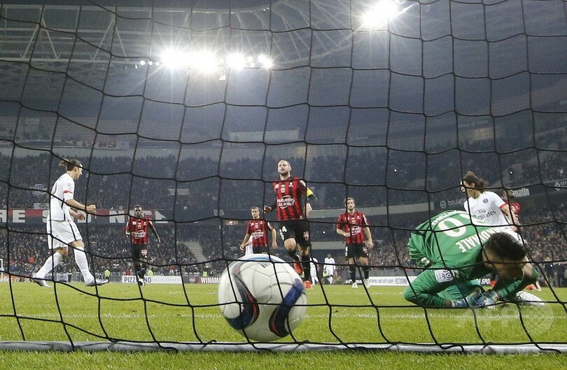前半終了間際、ニースのニクラス・フルト(Niklas Hult)がエリア内でイブラヒモビッチを倒し、レッドカードで一発退場を命じられると、PSGがPKを獲得。これをイブラヒモビッチが確実に決めて、ムスタファ・ダレブ(Mustapha Dahleb)氏の記録を抜く、リーグ戦通算86得点目を挙げた。