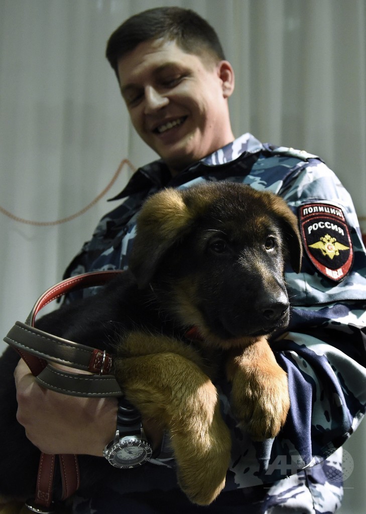 モスクワでシェパード子犬の譲渡式、仏警察犬「殉職」で