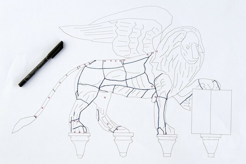 今回の修復は、「ヴェネチア保護のためのフランス委員会」のプロジェクトの一環として行われ、サンマルコ大聖堂のペディメントに位置する黄金の獅子像と、その後ろに配されたゴールドの星が輝くブルーのモザイクを、「シャネル」の支援により2つのチームが数ヶ月もの時間をかけ修復した。(c)MODE PRESS