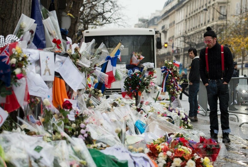 仏テロ被害の米バンド、現場で涙の犠牲者追悼