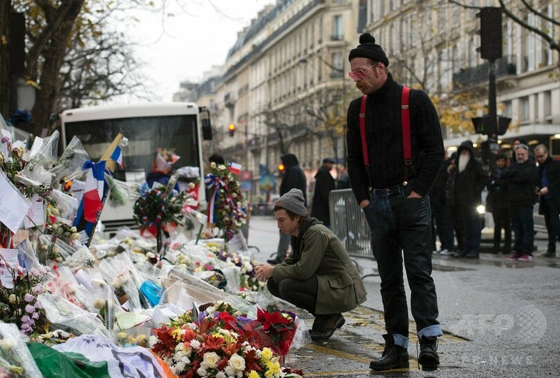 【12月9日 AFP】フランス・パリ(Paris)で先月発生した同時テロで、コンサート中の会場が襲撃を受けた米ロックバンド「イーグルス・オブ・デス・メタル(Eagles of Death Metal)」が8日、約1か月ぶりに事件現場を訪れ、涙を流しながら犠牲者らを追悼した。