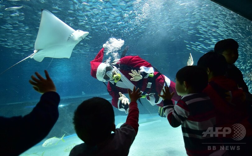 【12月11日 AFP】韓国の首都ソウル(Seoul)にある水族館「コエックス・アクアリウム(Coex Aquarium)」で9日、サンタクロースに扮(ふん)したダイバーが水槽の中を泳ぐパフォーマンスを行い、来場した子供たちを楽しませた。
