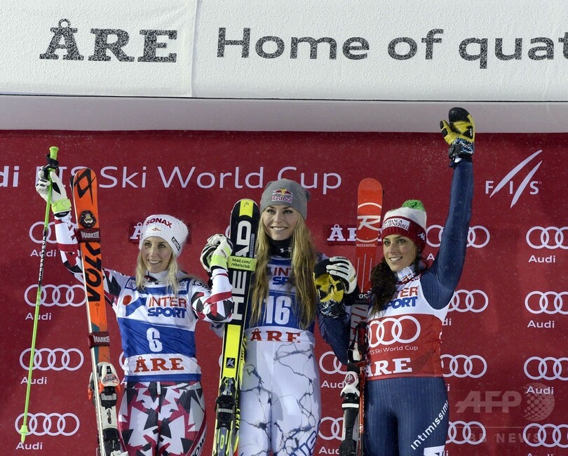 【12月13日 AFP】2015-16アルペンスキーW杯は12日、スウェーデンのアレ(Are)で女子大回転第3戦が行われ、米国のリンゼイ・ボン(Lindsey Vonn)が2本合計タイム2分4秒70で優勝し、総合首位のリードを伸ばした。