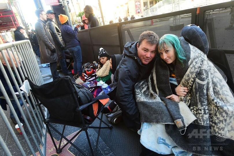【12月18日 AFP】米ロサンゼルス(Los Angeles)・ハリウッド(Hollywood)地区にある劇場「TCLチャイニーズ・シアター(TCL Chinese Theater)」前で17日、公開間近に迫った人気SF映画「スター・ウォーズ(Star Wars)」シリーズの最新作『スター・ウォーズ/フォースの覚醒(Star Wars: The Force Awakens)』を鑑賞するために行列に並んでいたファン同士のオーストラリア人カップルが、同シリーズをテーマにした結婚式を挙げた。