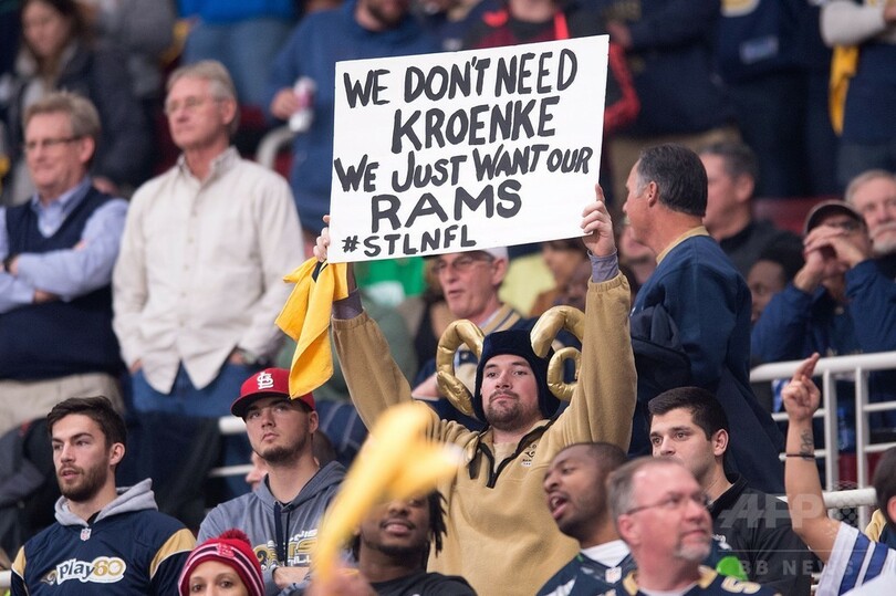 ほかに2つの球団とともに、ロサンゼルス(Los Angeles)移転を検討しているラムズは、この日がセントルイス(St. Louis)での最後のホームゲームになる可能性があり、会場にはファンの思いがあふれた。