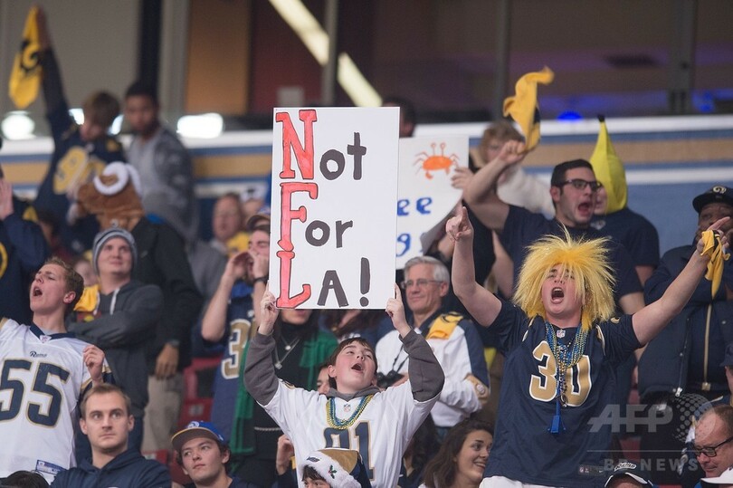 ほかに2つの球団とともに、ロサンゼルス(Los Angeles)移転を検討しているラムズは、この日がセントルイス(St. Louis)での最後のホームゲームになる可能性があり、会場にはファンの思いがあふれた。