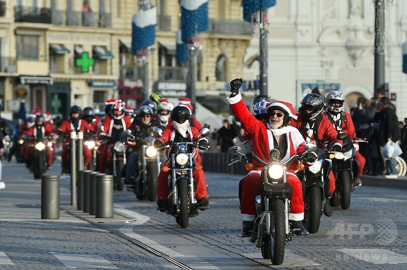 仏港町をサンタがオートバイで大行進、チャリティーイベントで