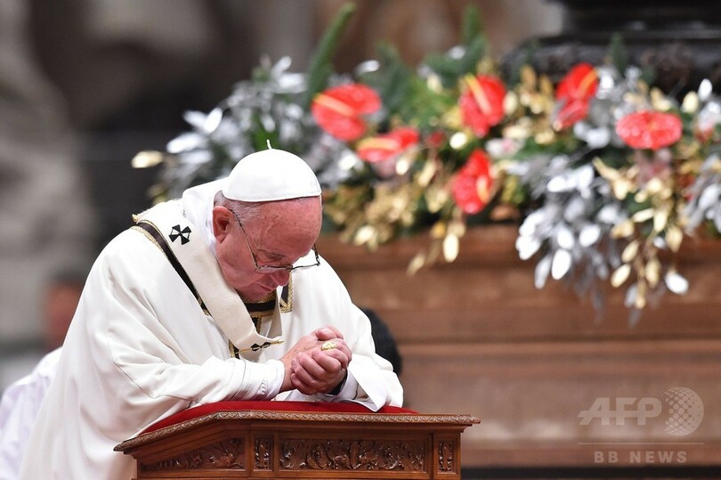 【12月25日 AFP】ローマ・カトリック教会のフランシスコ(Francis)法王(79)は24日夜、バチカンのサンピエトロ大聖堂(Saint Peter's Basilica)でクリスマスイブのミサを行い、ギフトシーズンにまん延する物質主義を拒否し「簡素で偏りのない」価値観を持とうと信徒たちを促した。