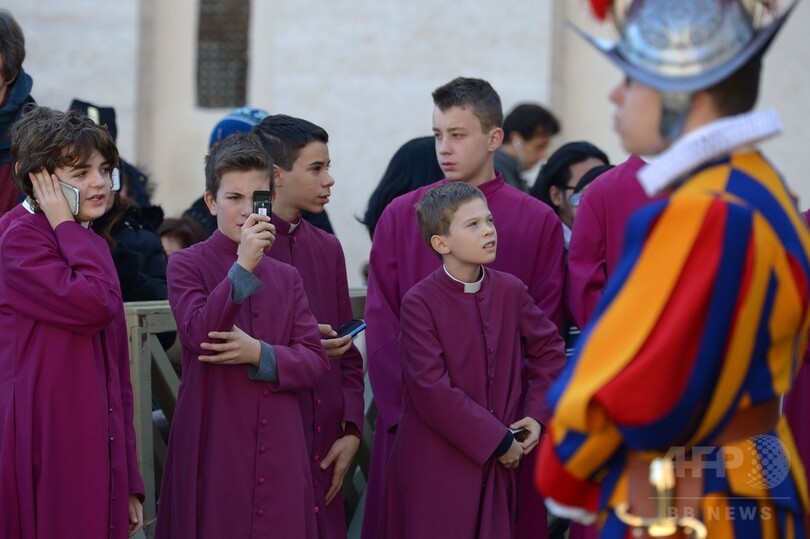 【12月25日 AFP】バチカンのサンピエトロ広場(St Peter's Square)で25日、ローマ・カトリック教会のフランシスコ(Francis)法王が毎年恒例となっているクリスマスメッセージ「ウルビ・エト・オルビ(Urbi et Orbi)」(ローマと全世界へ)を読み上げるのを前に、スイス衛兵がパレードを行った。(c)AFP