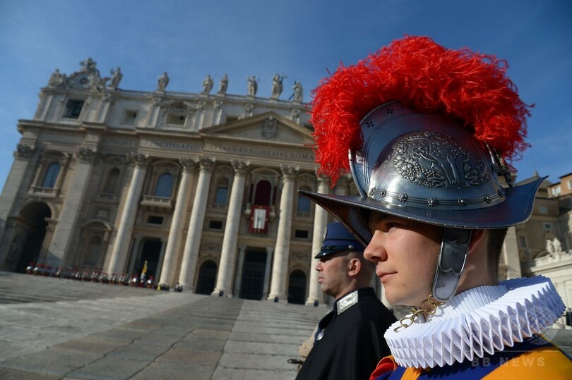 【12月25日 AFP】バチカンのサンピエトロ広場(St Peter's Square)で25日、ローマ・カトリック教会のフランシスコ(Francis)法王が毎年恒例となっているクリスマスメッセージ「ウルビ・エト・オルビ(Urbi et Orbi)」(ローマと全世界へ)を読み上げるのを前に、スイス衛兵がパレードを行った。(c)AFP