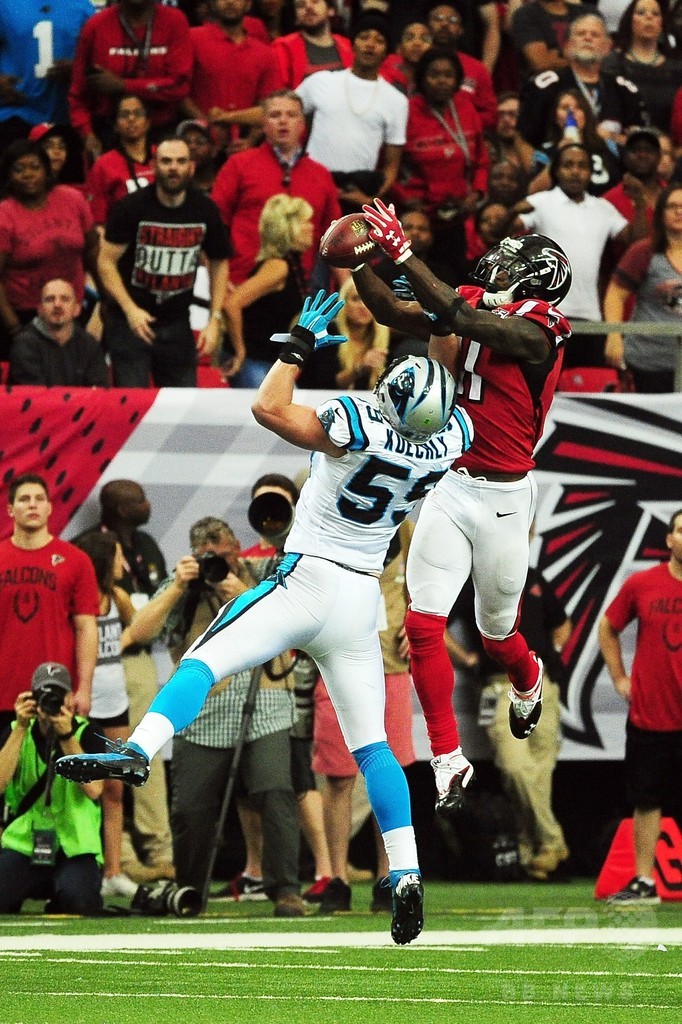 この日最も会場を沸かせたプレーは、第3クオーターにファルコンズのQBマット・ライアン(Matt Ryan)が投げたロングパスを、ジョーンズがキャッチしたシーンだった。ジョーンズは、パンサーズのCBチャールズ・ティルマン(Charles Tillman)、MLBルーク・キークリー(Luke Kuechly)との空中戦を制して捕球すると、そのままエンドゾーンを駆け抜けた。