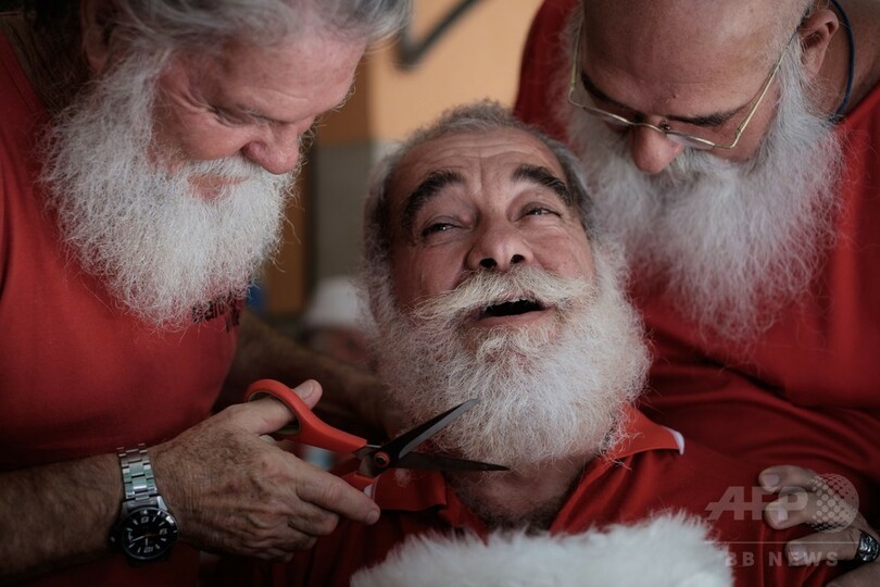 【12月29日 AFP】ブラジル・リオデジャネイロ(Rio de Janeiro)にあるサンタクロースの養成学校で28日、役目を無事に終えたサンタたちが、厚く生やしたあごひげをそり「卒業式」に臨んだ。今年卒業する約30人のサンタは、汗まみれになって商店街や病院を訪れ、クリスマスシーズンを盛り上げた。
