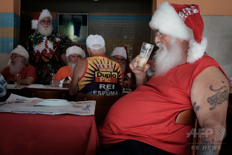 【12月29日 AFP】ブラジル・リオデジャネイロ(Rio de Janeiro)にあるサンタクロースの養成学校で28日、役目を無事に終えたサンタたちが、厚く生やしたあごひげをそり「卒業式」に臨んだ。今年卒業する約30人のサンタは、汗まみれになって商店街や病院を訪れ、クリスマスシーズンを盛り上げた。