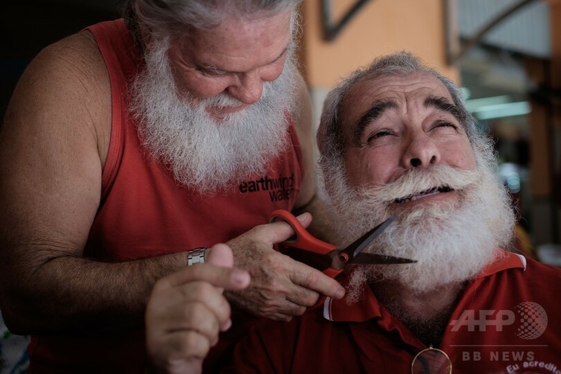 【12月29日 AFP】ブラジル・リオデジャネイロ(Rio de Janeiro)にあるサンタクロースの養成学校で28日、役目を無事に終えたサンタたちが、厚く生やしたあごひげをそり「卒業式」に臨んだ。今年卒業する約30人のサンタは、汗まみれになって商店街や病院を訪れ、クリスマスシーズンを盛り上げた。