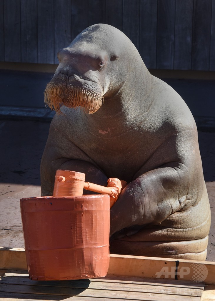 【12月30日 AFP】神奈川県横浜市の「横浜・八景島シーパラダイス(Hakkeijima Sea Paradise aquarium park)」で30日、雌のセイウチ「ピコ」がきねを使って餅をつくパフォーマンスを披露した。