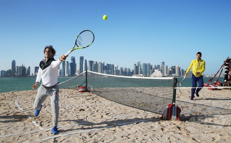 ナダルとジョコビッチ、ドーハの海岸でエキシビション