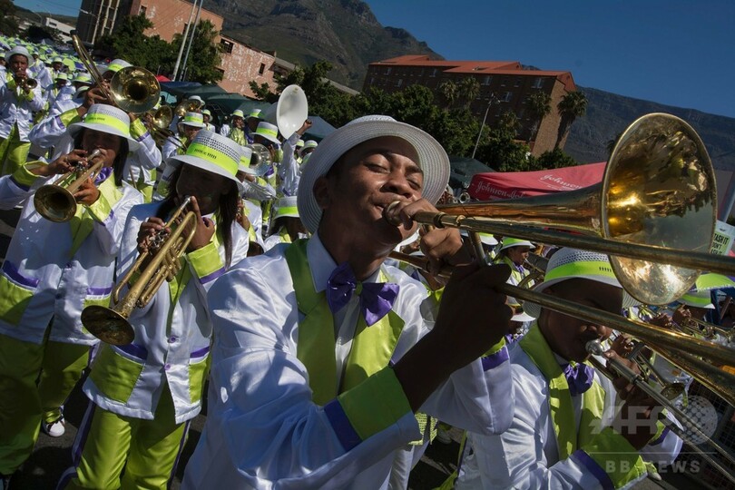 【1月4日 AFP】南アフリカのケープタウン(Cape Town)で2日、毎年恒例の「ミンストレル・カーニバル(Minstrels Carnival)」が開催され、数十の楽団が市内の通りを演奏しながら行進した。