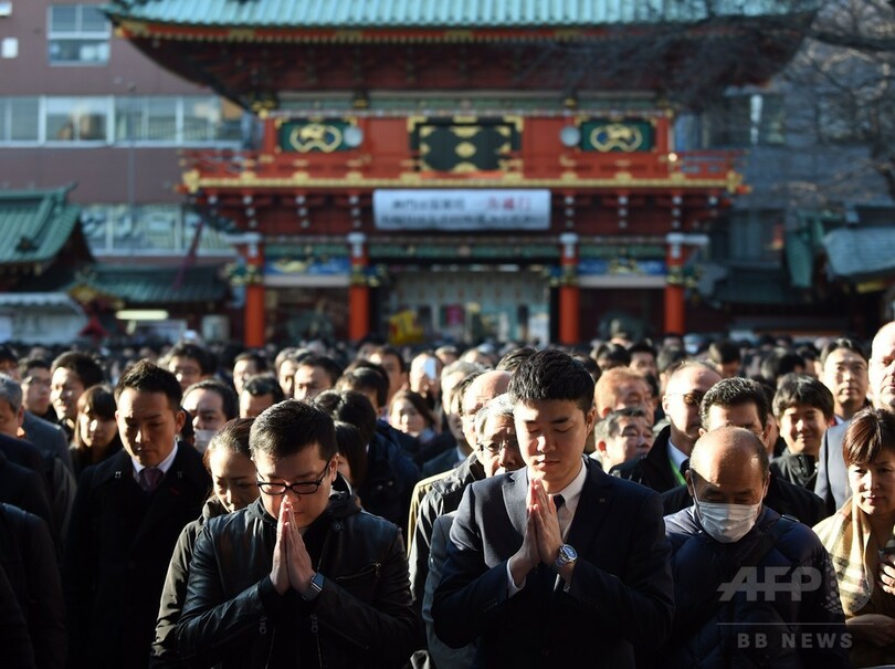 【1月4日 AFP】商売繁盛のご利益で知られる東京・千代田区の神田明神(Kanda shrine)に4日、大勢の会社員らが新年の仕事始めの参拝に訪れた。4日と5日の2日間で、4000社が祈祷を受けるという。(c)AFP