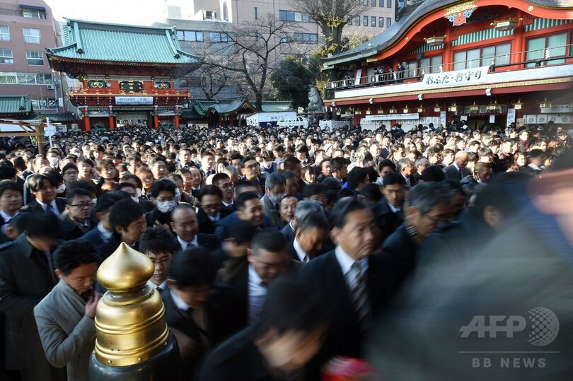 【1月4日 AFP】商売繁盛のご利益で知られる東京・千代田区の神田明神(Kanda shrine)に4日、大勢の会社員らが新年の仕事始めの参拝に訪れた。4日と5日の2日間で、4000社が祈祷を受けるという。(c)AFP