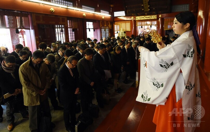 【1月4日 AFP】商売繁盛のご利益で知られる東京・千代田区の神田明神(Kanda shrine)に4日、大勢の会社員らが新年の仕事始めの参拝に訪れた。4日と5日の2日間で、4000社が祈祷を受けるという。(c)AFP