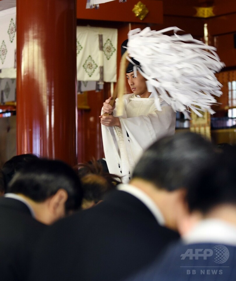 【1月4日 AFP】商売繁盛のご利益で知られる東京・千代田区の神田明神(Kanda shrine)に4日、大勢の会社員らが新年の仕事始めの参拝に訪れた。4日と5日の2日間で、4000社が祈祷を受けるという。(c)AFP