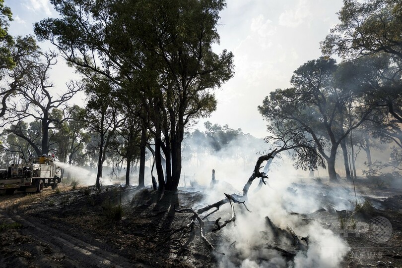 火の勢いは衰えないまま州都パース(Perth)の南方110キロまで迫っており、規模は過去24時間で倍増。これまでに5万3000ヘクタールが焼失した。ヤーループでは町の3分の1が被害を受け、複数の歴史的な建築物も焼失するなど「壊滅的」な状況だという。(c)AFP
