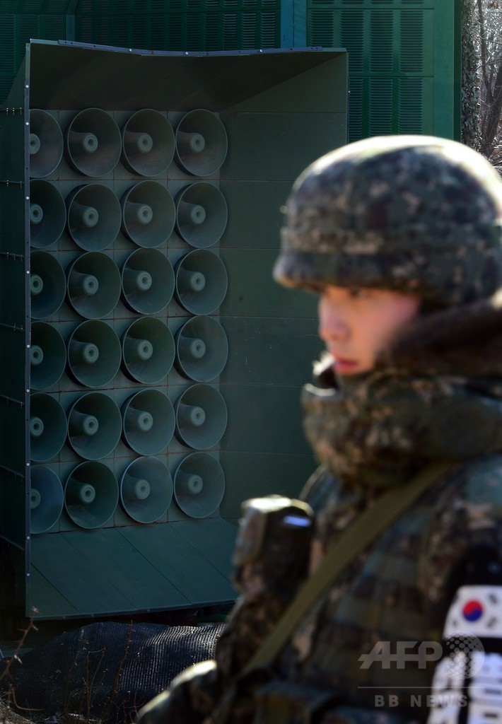 北朝鮮が6日に核実験を実施したことを受け、韓国はこれまで北朝鮮を激怒させてきた宣伝放送を再開。北朝鮮の金正恩(キム・ジョンウン、Kim Jong-Un)第1書記の誕生日に当たる8日、南北軍事境界線沿いに並んだ拡声器から、金第1書記体制を批判し、民主主義の長所をたたえるメッセージとともに、ヒットソングが大音量で流された。