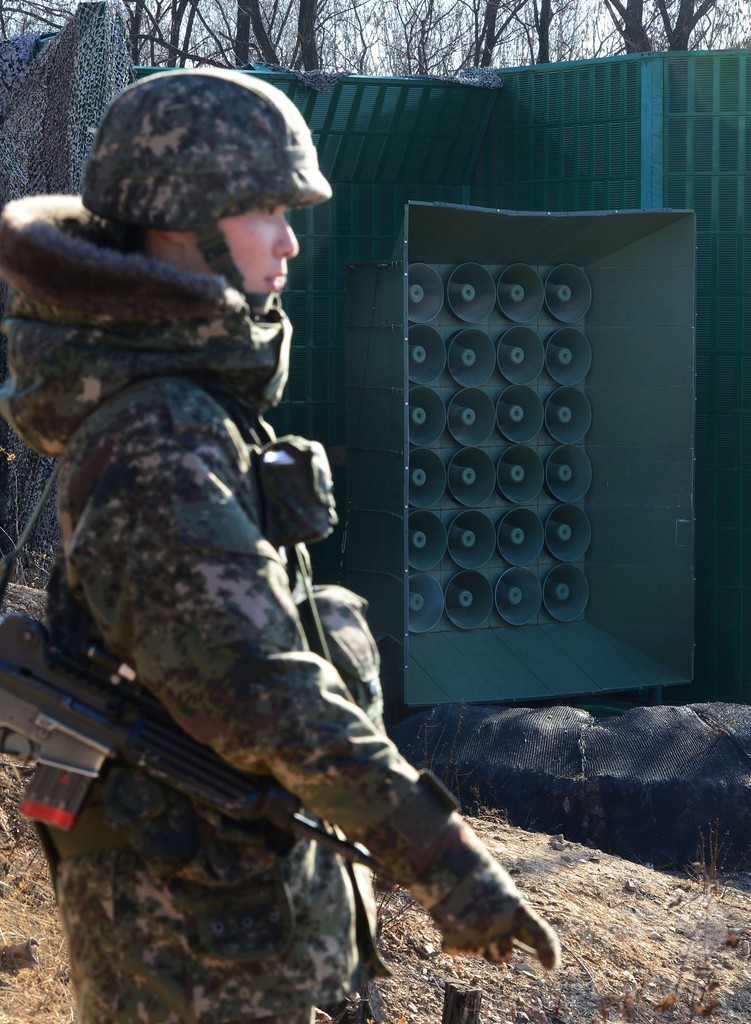 北朝鮮が6日に核実験を実施したことを受け、韓国はこれまで北朝鮮を激怒させてきた宣伝放送を再開。北朝鮮の金正恩(キム・ジョンウン、Kim Jong-Un)第1書記の誕生日に当たる8日、南北軍事境界線沿いに並んだ拡声器から、金第1書記体制を批判し、民主主義の長所をたたえるメッセージとともに、ヒットソングが大音量で流された。