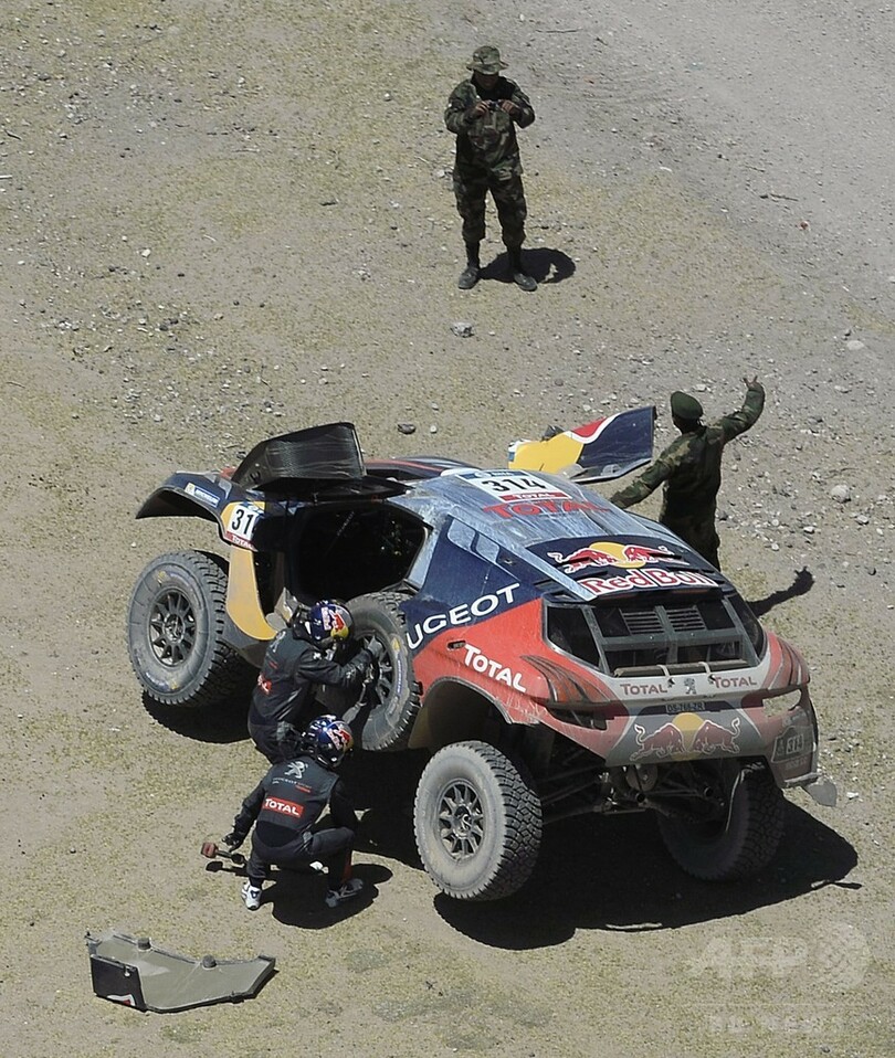 12度目の総合優勝を目指す50歳のペテランセルは、ウユニ(Uyuni)の塩原を周回する今大会最長の542キロのスペシャルステージ(競技区間)で、豊富な経験を生かして5時間1分7秒を記録し、2位に入った同じくプジョーのカルロス・サインツ(Carlos Sainz、スペイン)に17秒差をつけた。