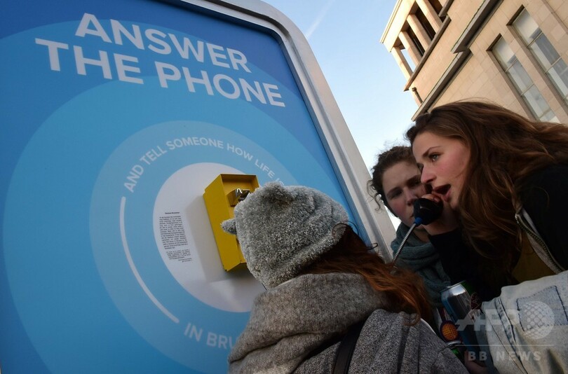電話はこのほか、美術館や博物館が隣接している地区「芸術の丘(Mont des Arts)」と、お洒落なエリアとして知られる「フラジェイ広場(Place Flagey)」に設置されている。この試みは11日まで行われる予定。(c)AFP