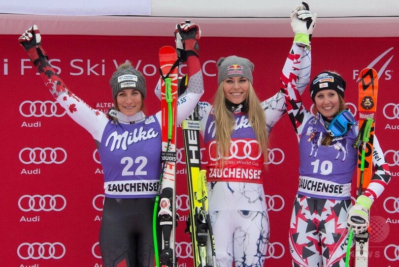 W杯で通算72勝目を挙げたボンは、女子滑降でもアンネマリー・モザー・プレル(Annemarie Moser-Proell)氏の歴代最多に並ぶ36度目の優勝を飾った。ボンは、モザー・プレル氏が保持していたW杯史上最多の通算62勝をすでに更新しており、この日は同氏が会場で見守る中、滑降の最多優勝記録にも並んだ。