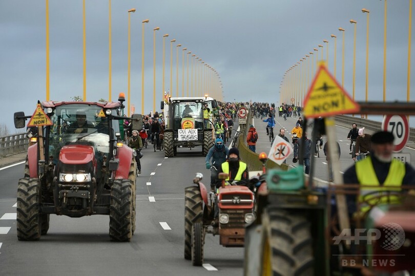 仏ナントで新空港計画に抗議のデモ、2万人が道路封鎖