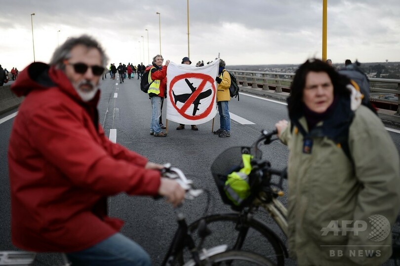 仏ナントで新空港計画に抗議のデモ、2万人が道路封鎖