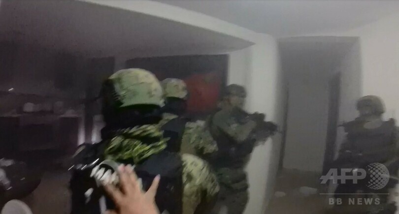 メキシコ北西部ロスモチス(Los Mochis)にある住宅で行われた作戦では、兵士らが銃で武装した男5人を殺害、容疑者6人を拘束。だがグスマン受刑者は、クローゼット内の鏡の裏に隠されていたトンネルから脱出した後だった。