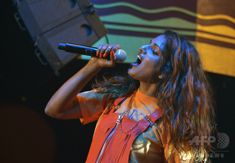 これに対してM.I.A.は、ツイッターで問題のユニホームを着た画像に、MIAvsPSGとつづって投稿している。(c)AFP