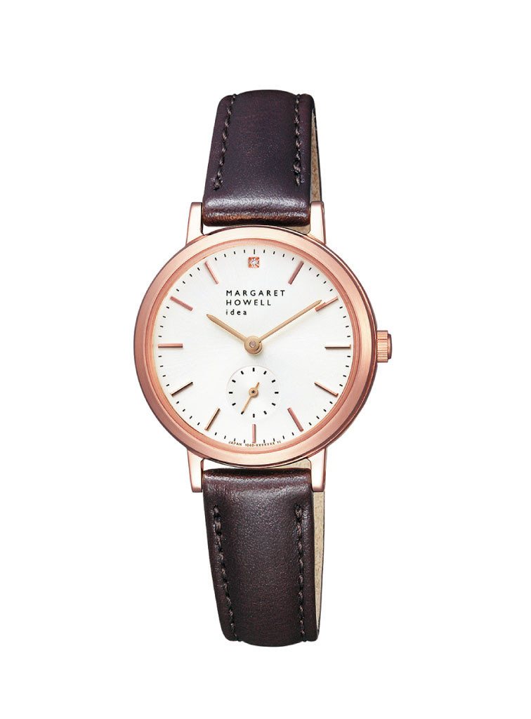 マーガレット・ハウエルらしいミニマルなデザインは、手元に上品さをプラス。ゴールドカラーケースに包まれたダイアルには、ダイヤモンドをワンポイント配置し、特別感のある仕上がりとなった。ブラウン、ダークブラウンのシックなレザーバンドで、どんなファッションにもコーディネートすることができる。ケースバックには20周年記念の刻印が施された。各カラー800本限定で、価格は税抜35,000円。